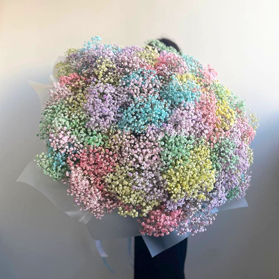 Гипсофила объемная, поэтому за одинаковую стоимость букет из гипсофилы будет больше, чем букет из других цветов, а еще гипсофила отличается высокой стойкостью - при правильном уходе она сохраняет свежесть до 3х недель. В наличии есть другие оттенки, напишите нам в мессенджеры, пришлем фото на выбор.