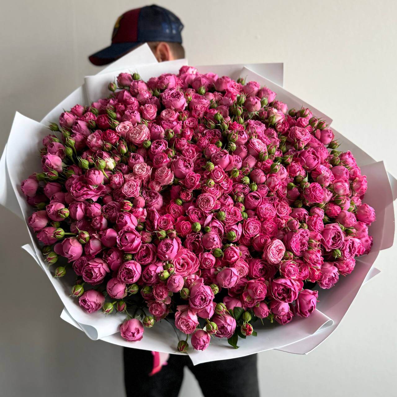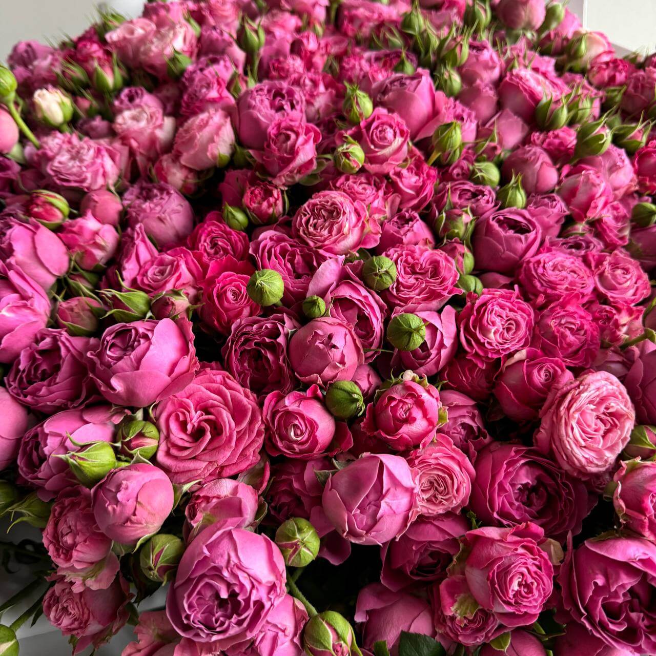 Классические кустовые розы. Отличаются объемом т.к на каждой ветке от 3 бутонов. Всегда в наличии большая цветовая гамма. После оформления заказа с вами свяжется менеджер и пришлет фото на выбор.