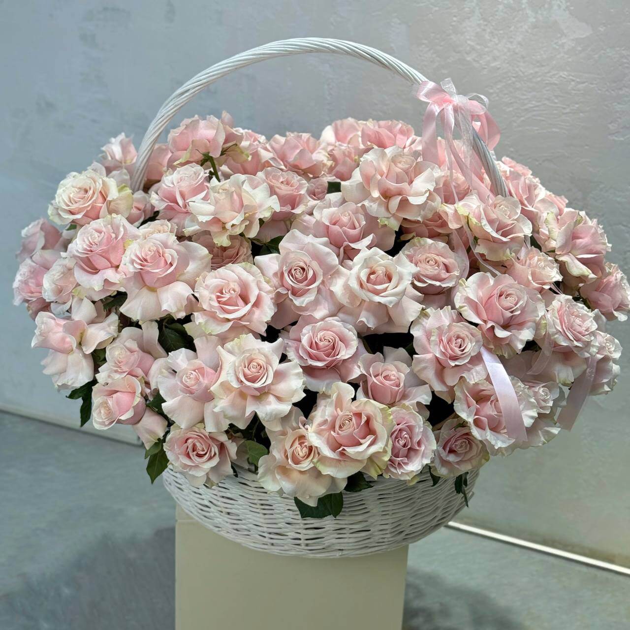 Авторская композиция в корзине с невероятно красивыми Эквадорскими розами пинк мондиаль и махровый эустомы. Станет незабываемым подарком по любому поводу. Возможно изменить цветовую гамму по вашему желанию, напишите нам для консультации.
