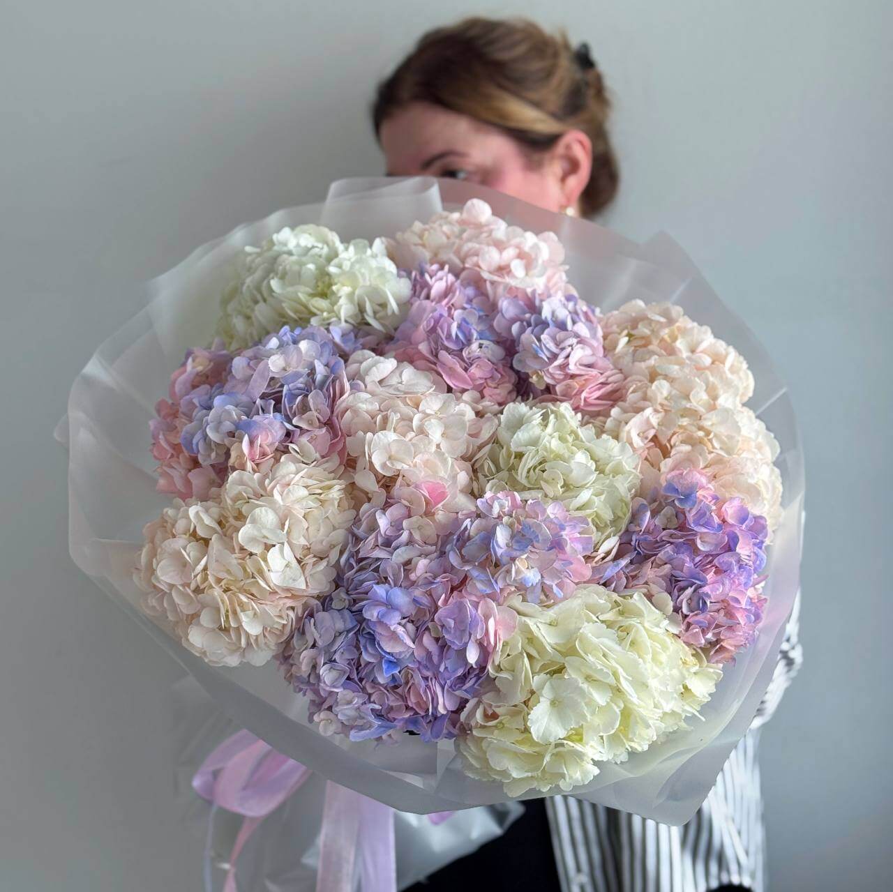 Гортензия поражает нежностью, обилием расцветок и невероятным объемом. Она роскошна и всего 5 веток создают очень приличный букет. Всегда в наличии большая цветовая гамма. Напишите нам в мессенджеры, пришлем фото на выбор.