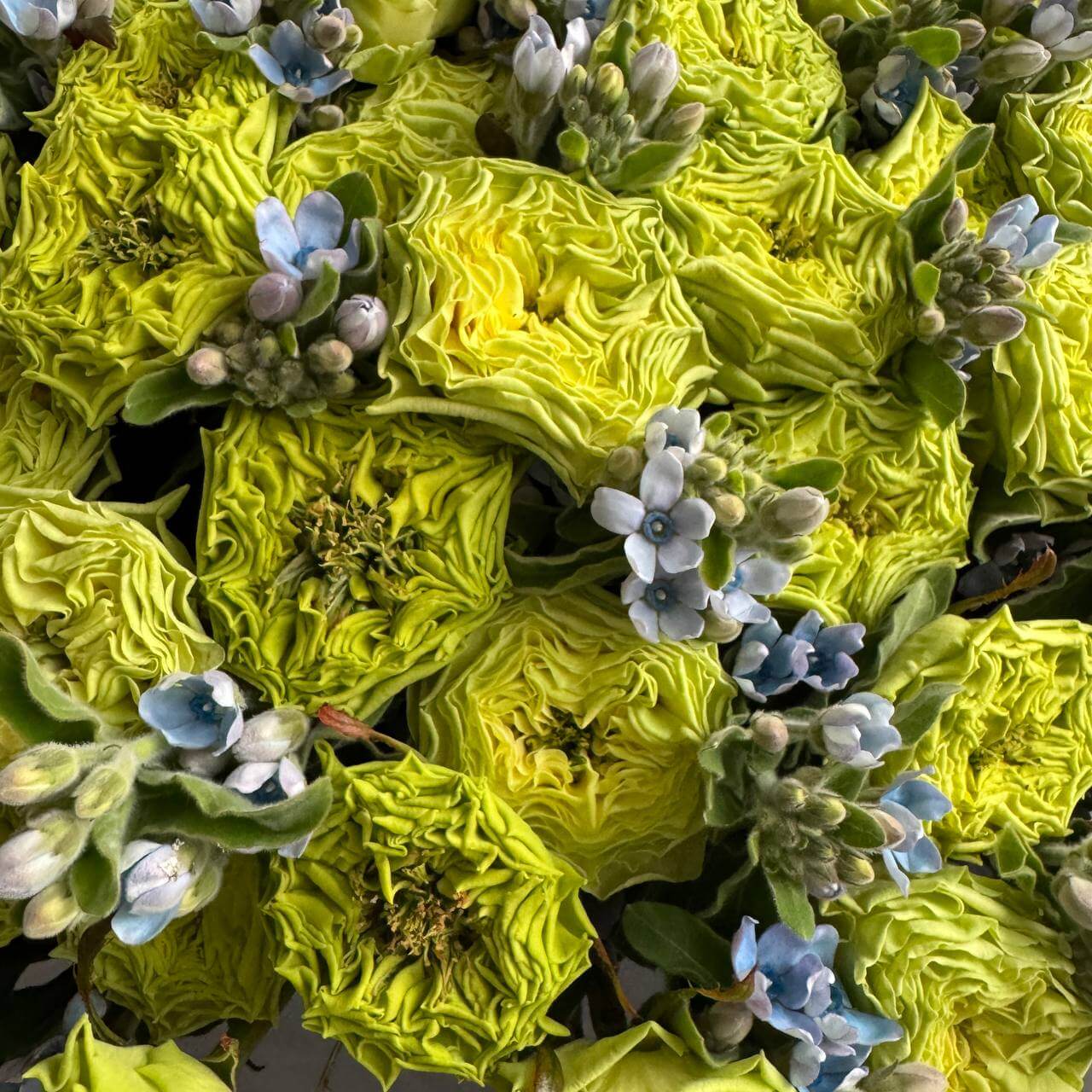 Моно-букет из кустовой пионовидной розы джульетта. Она кружевная, очень объемная и бесконечно красивая. Букет даже из небольшого количества цветов получается объемным.