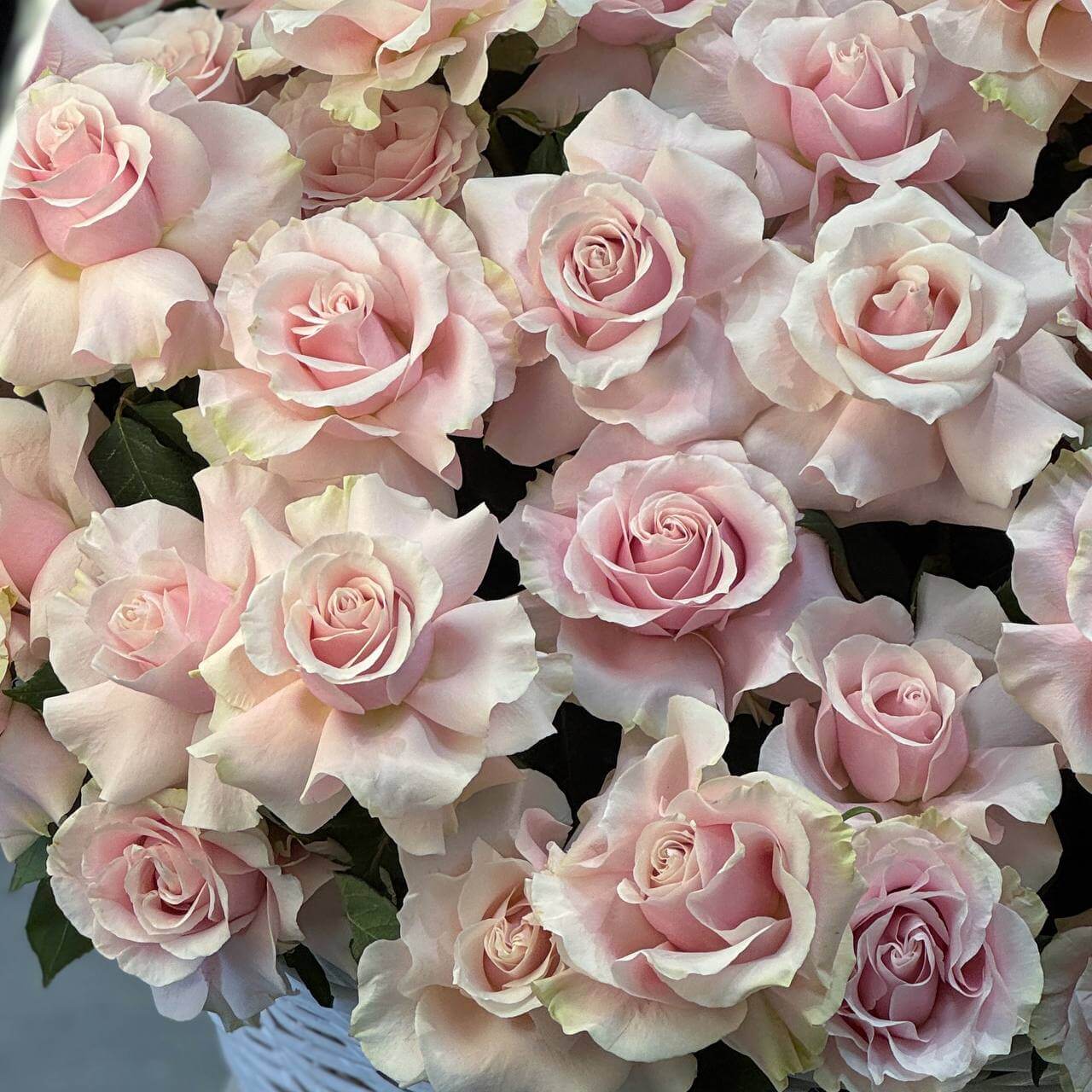 Микс из классических и пионовидных роз. Это Эквадорские розы с крупным размером бутона и высокой ножкой(от 70см). Упаковка фломеран и ленты атласные.